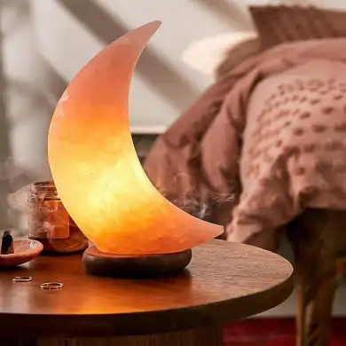 Himalayan Salt Lamps are hand-carved from pure pink Himalayan rock salt, each piece glowing with a warm, soothing light. Known for their natural beauty, these lamps not only enhance any space with a calming ambiance but are also believed to release negative ions that help purify the air and promote relaxation. Every lamp is unique in shape and color, making it both a wellness aid and a decorative centerpiece.